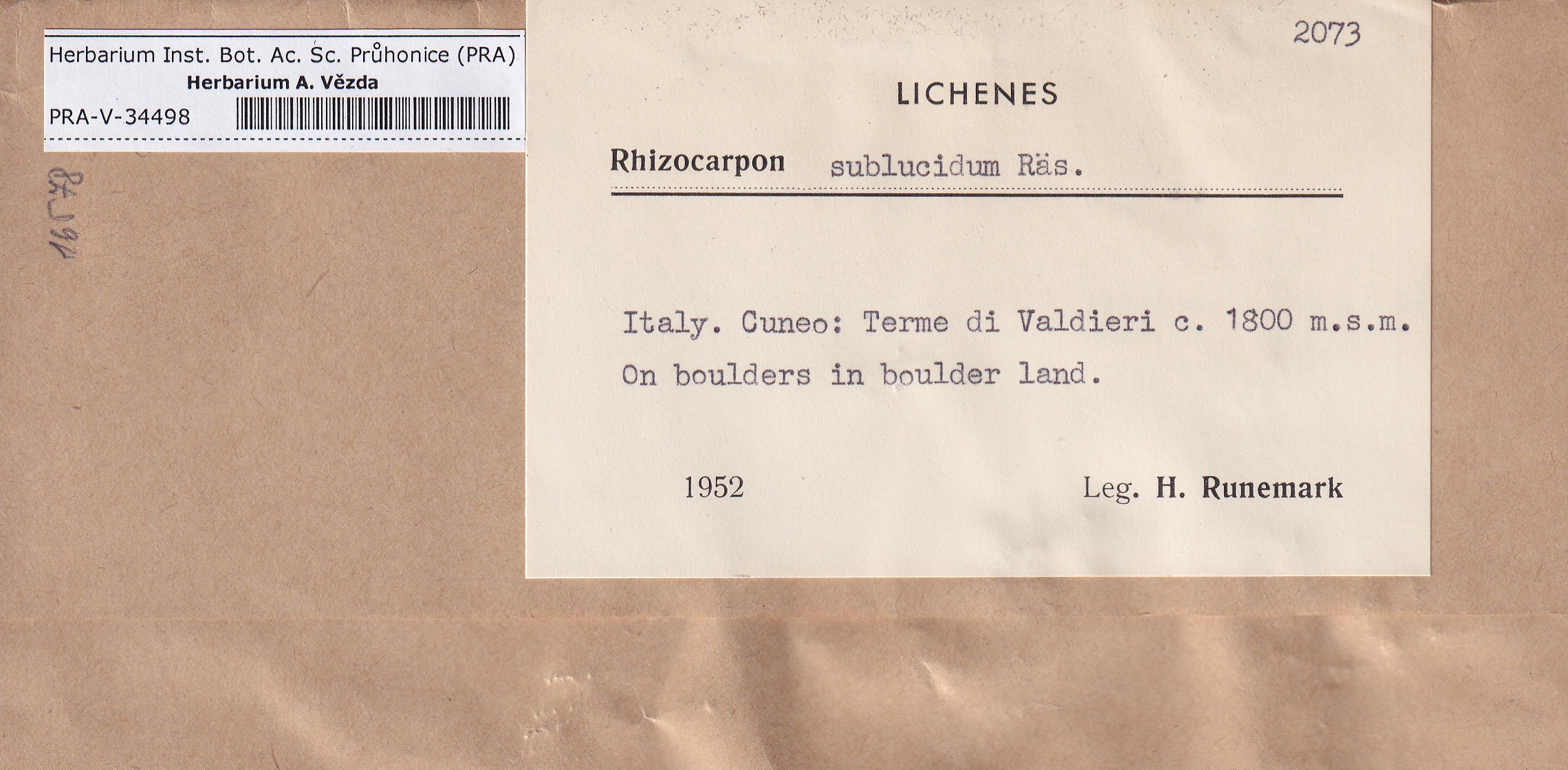 - Deposited in parcel no. 173 Rhizocarpon M-Z