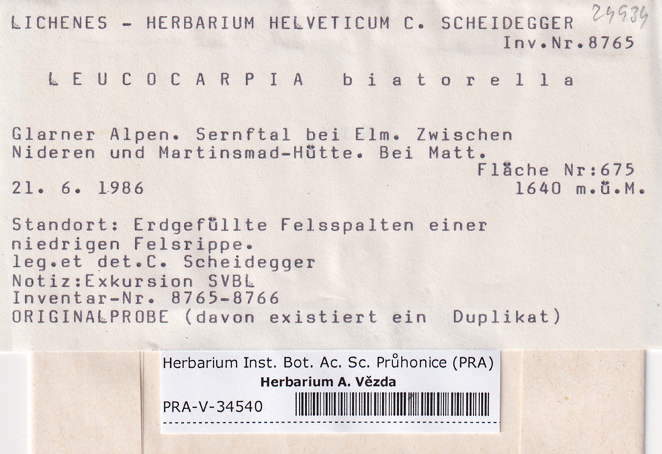 - Deposited in parcel no. 174 Polyblastia, Leucocarpia