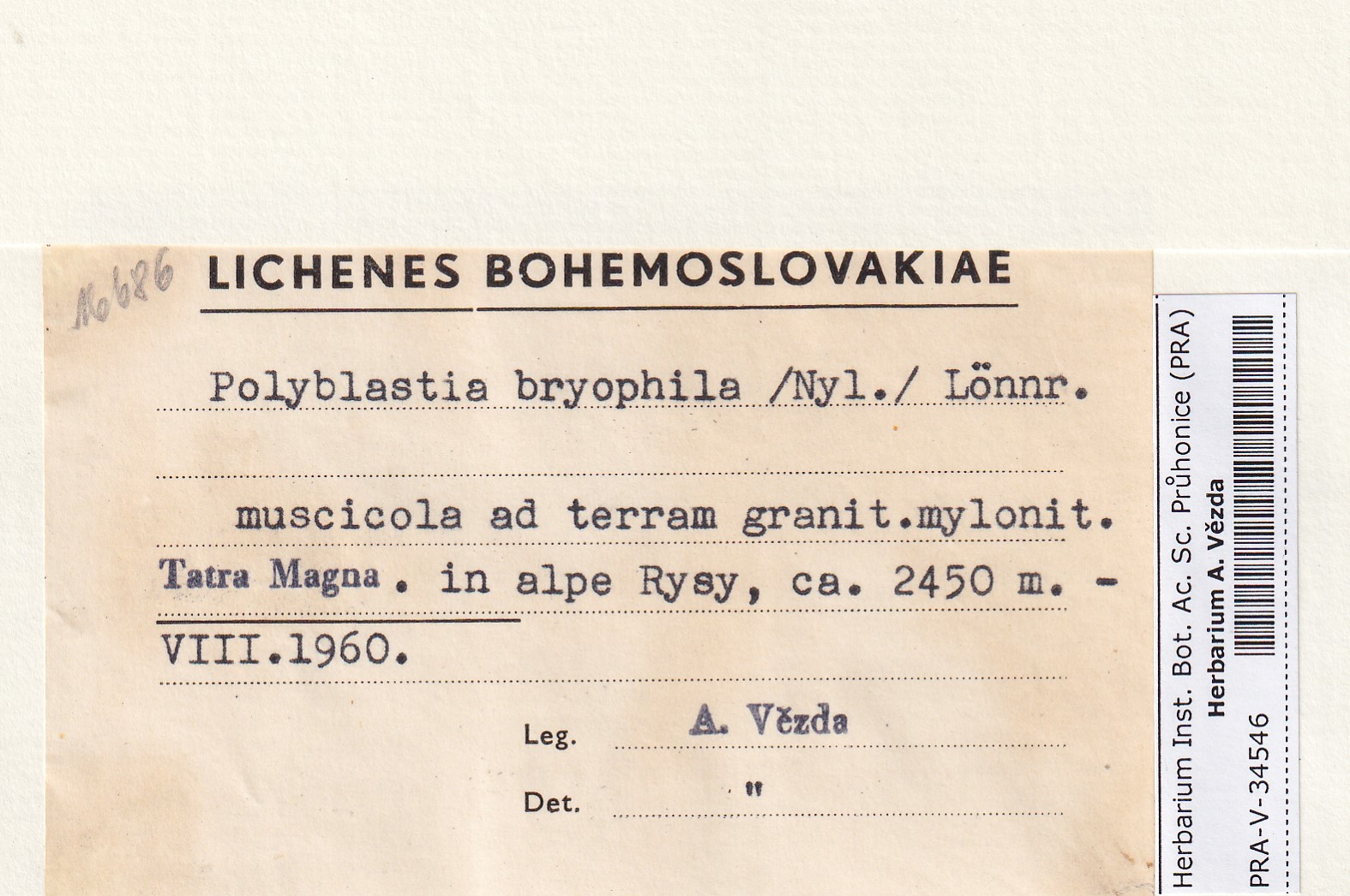- Deposited in parcel no. 174 Polyblastia, Leucocarpia