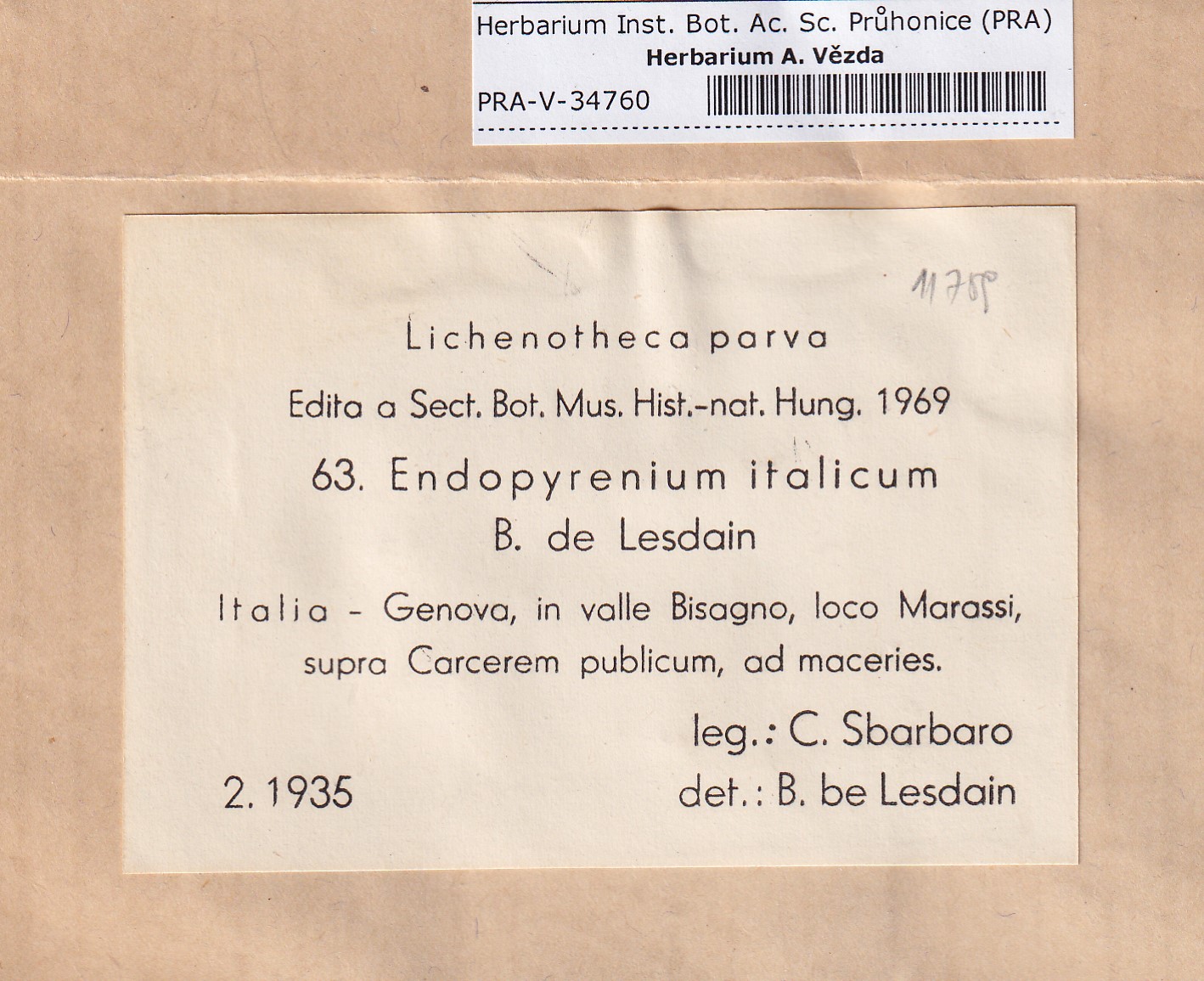 - Deposited in parcel no. 176 Verrucaria D-Z