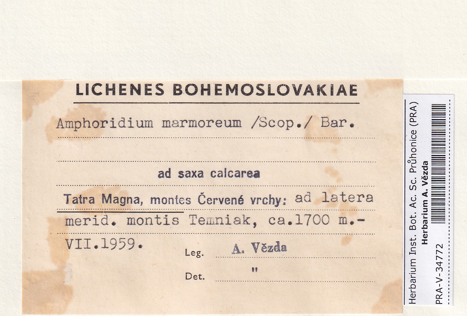 - Deposited in parcel no. 176 Verrucaria D-Z