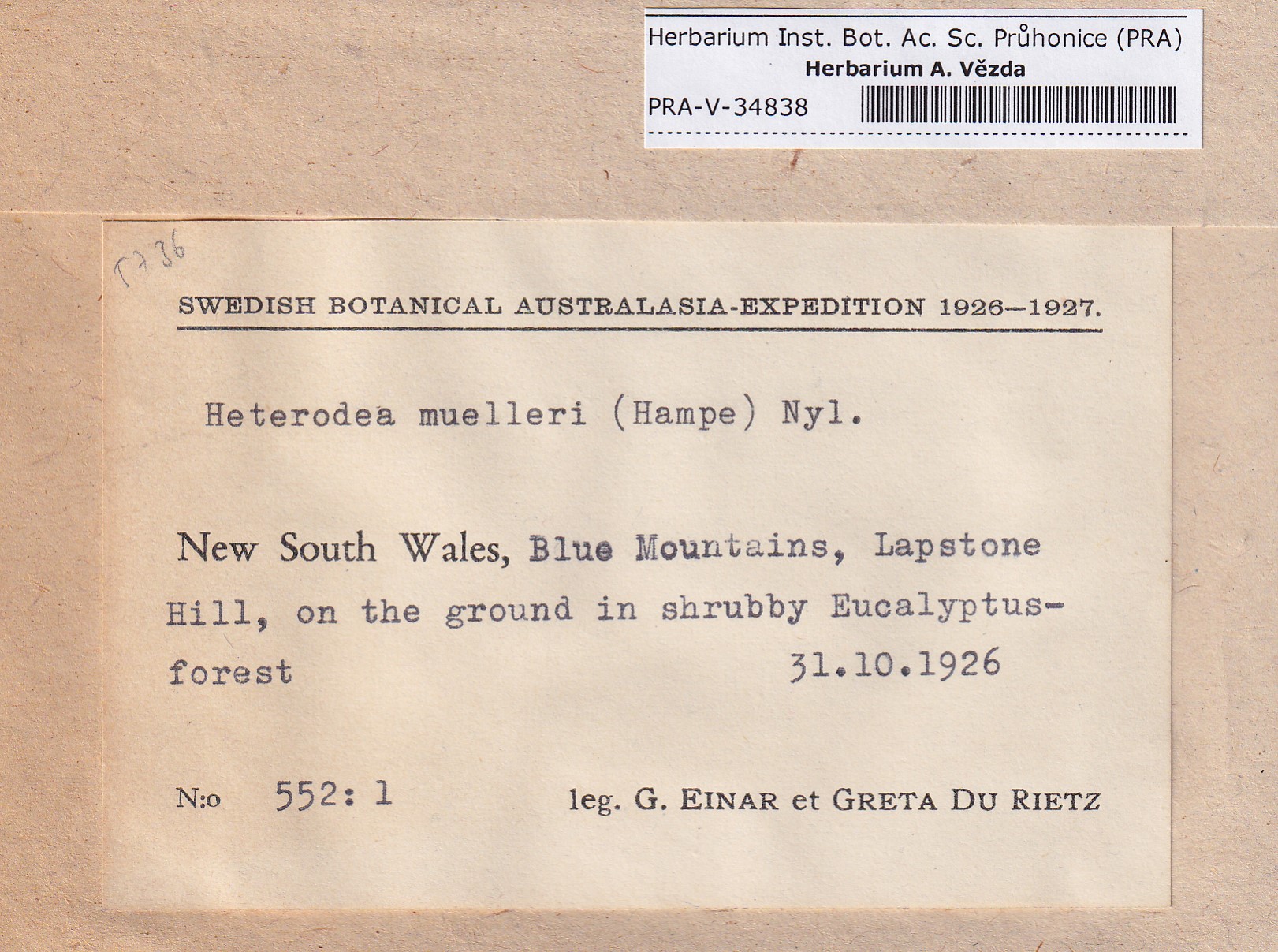 - Deposited in parcel no. 176 Parmeliopsis,...