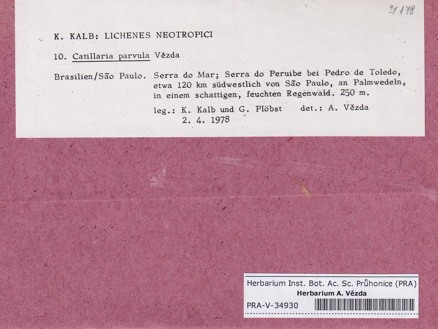 - Deposited in parcel Kalb, Lich. Neotrop.