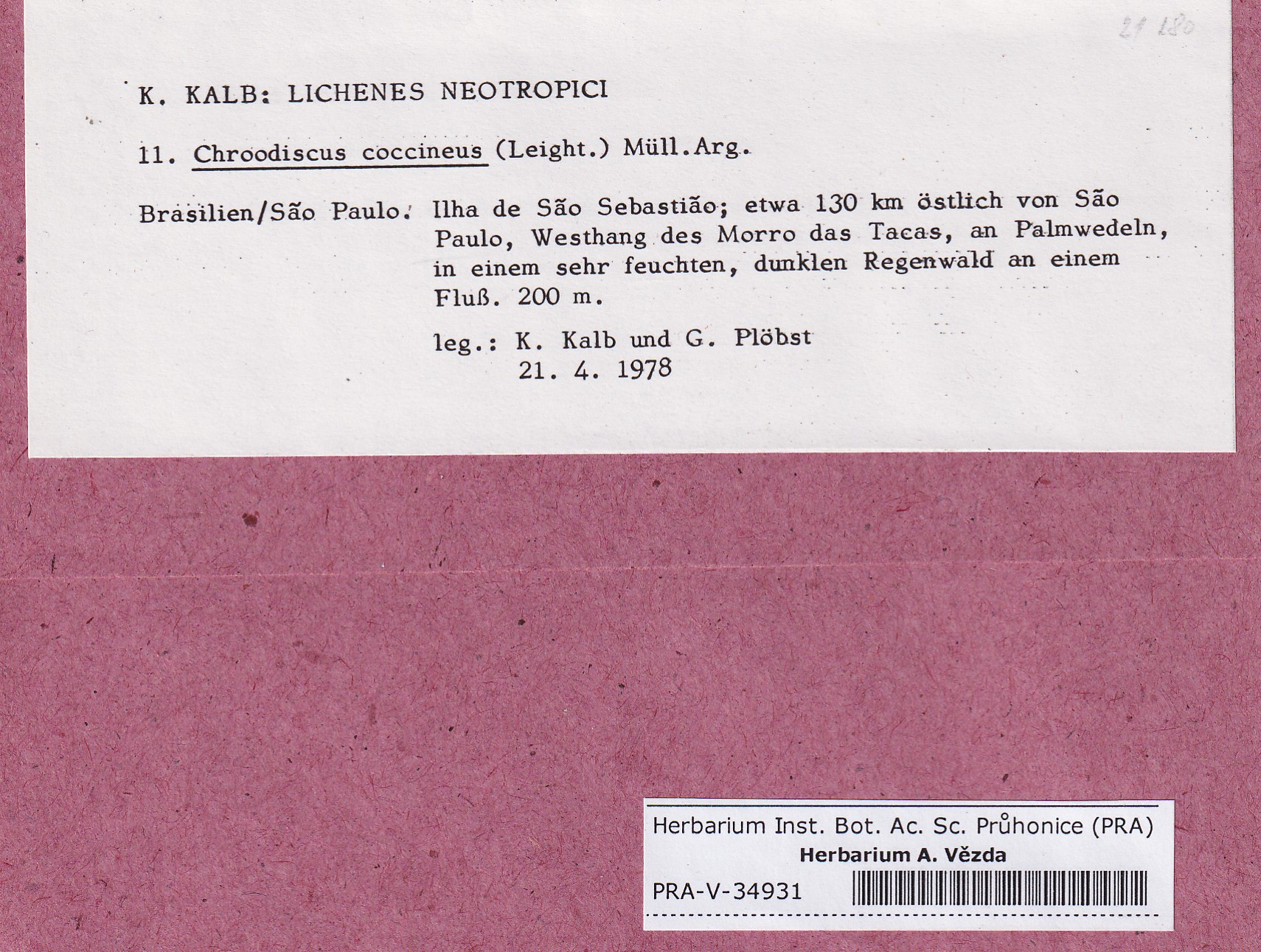 - Deposited in parcel Kalb, Lich. Neotrop.