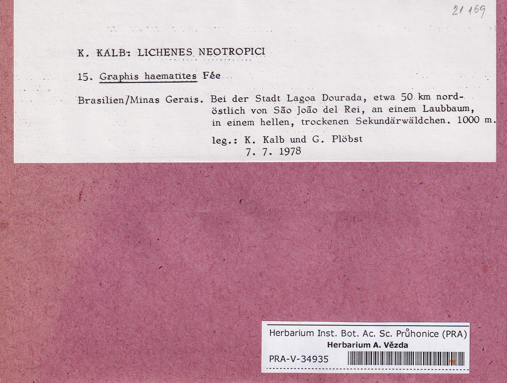 - Deposited in parcel Kalb, Lich. Neotrop.