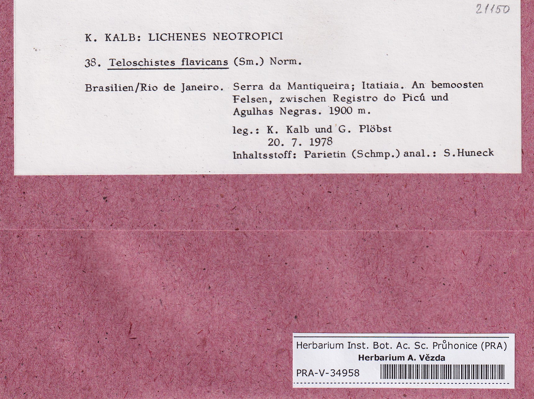 - Deposited in parcel Kalb, Lich. Neotrop.