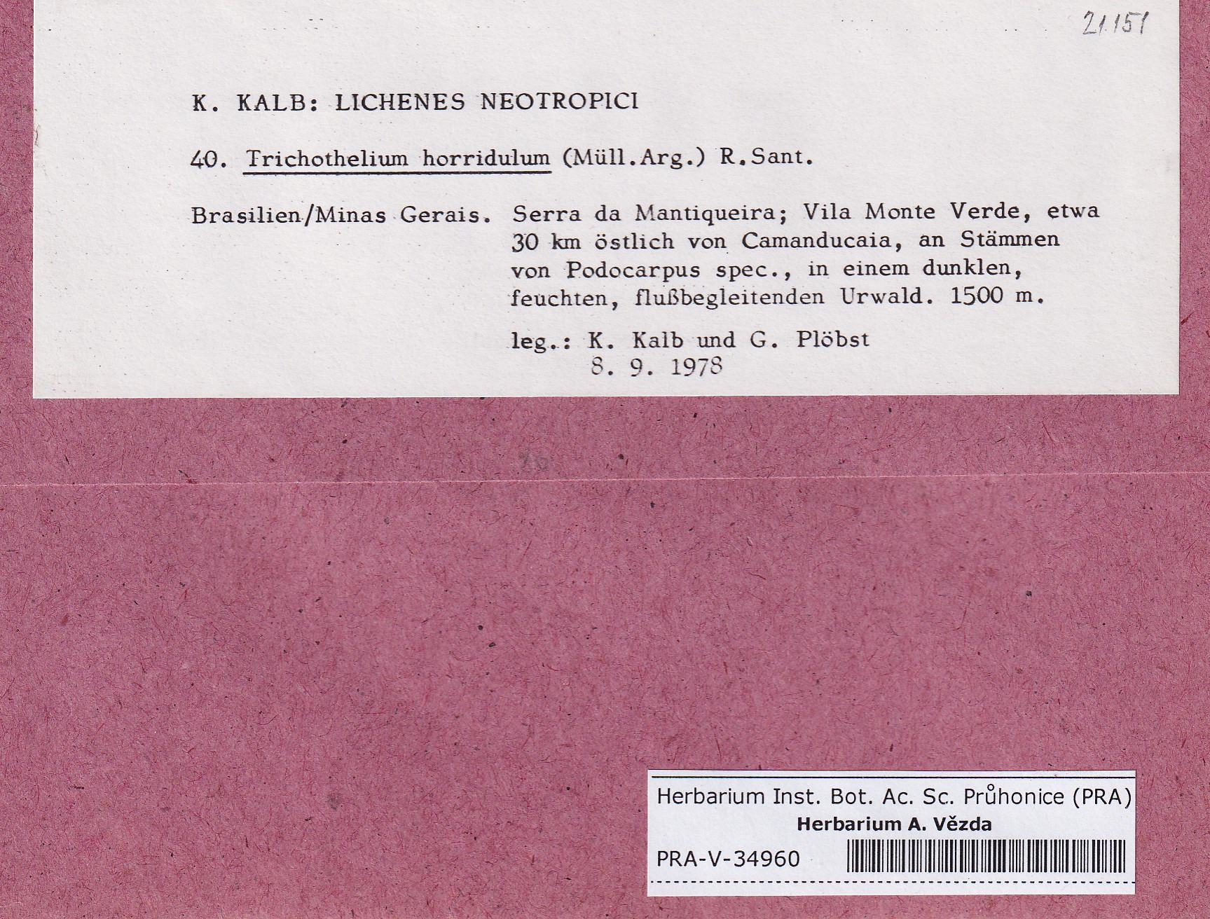 - Deposited in parcel Kalb, Lich. Neotrop.