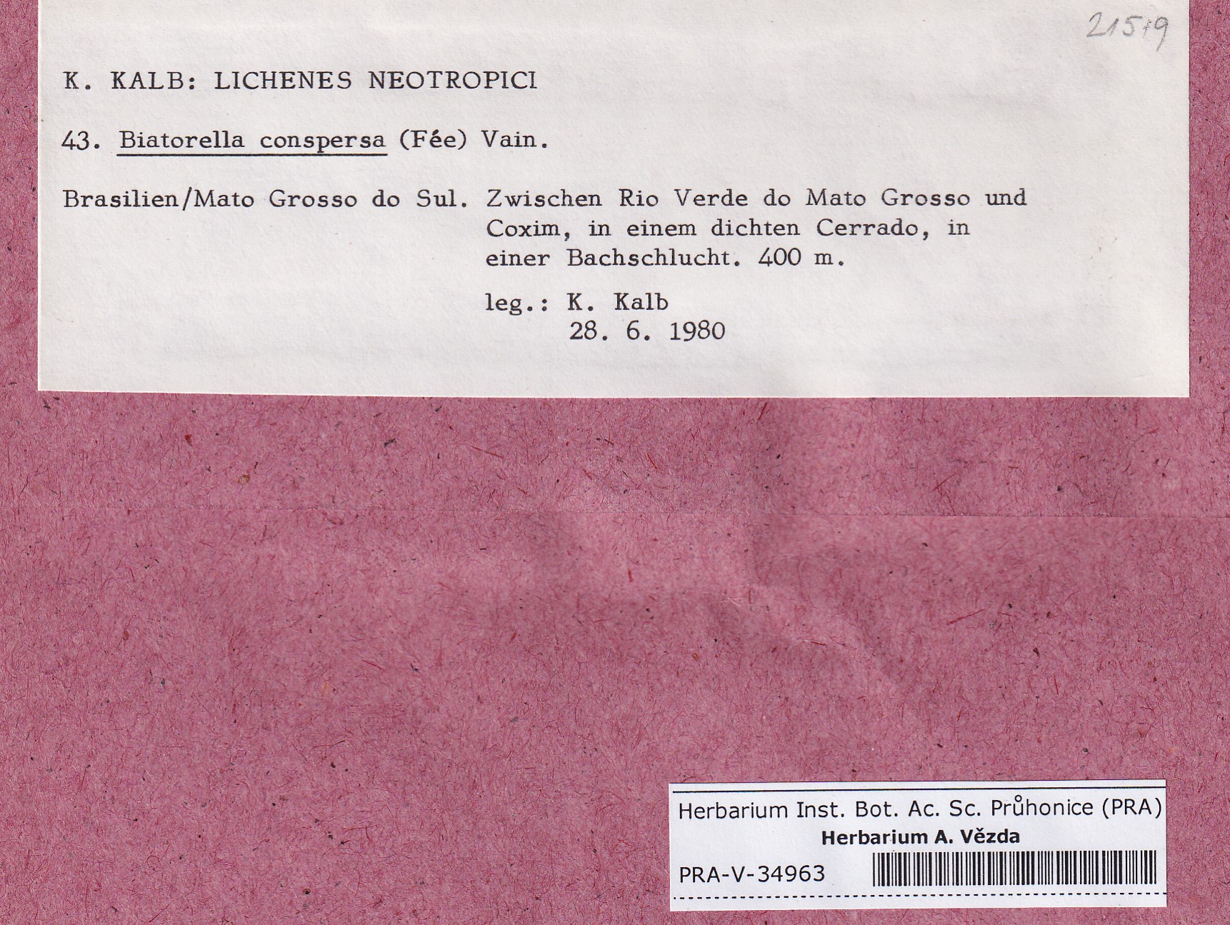 - Deposited in parcel Kalb, Lich. Neotrop.