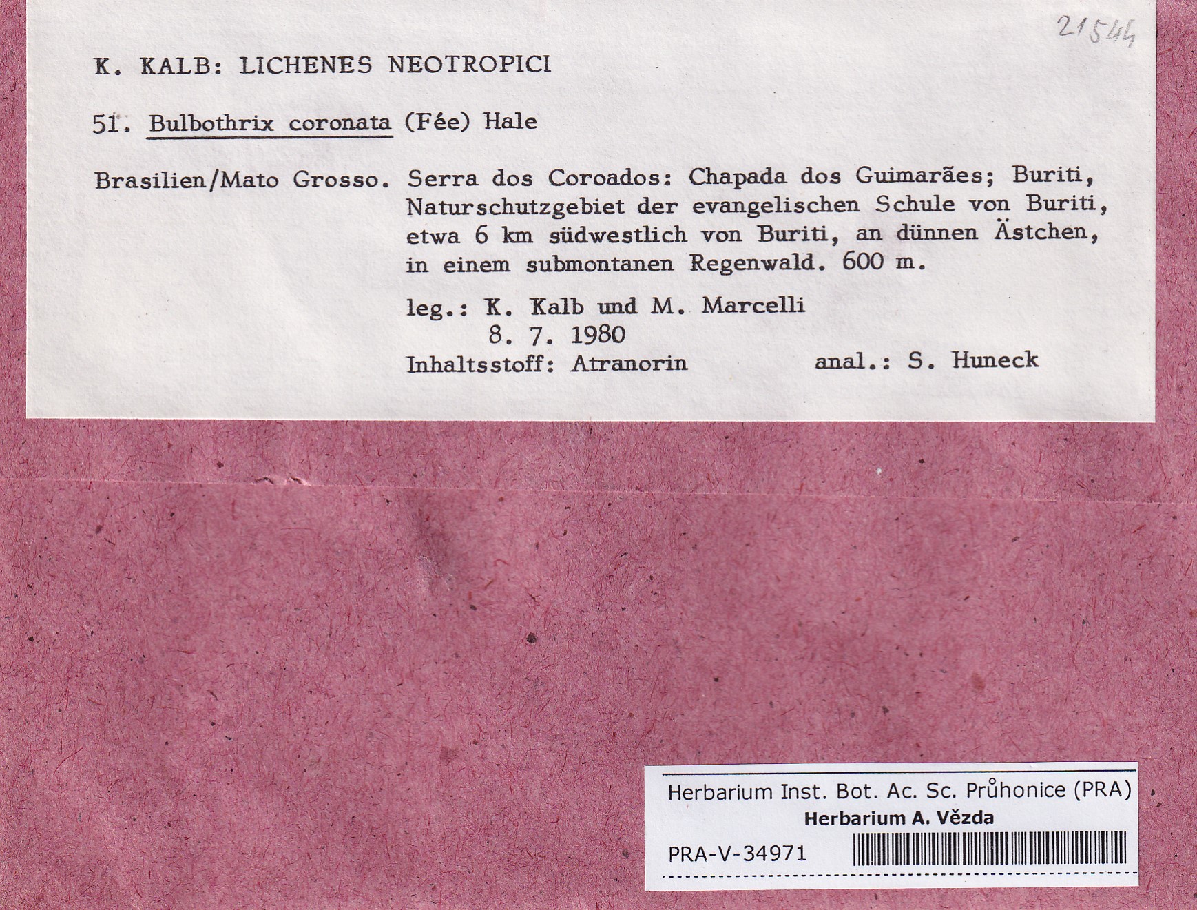 - Deposited in parcel Kalb, Lich. Neotrop.