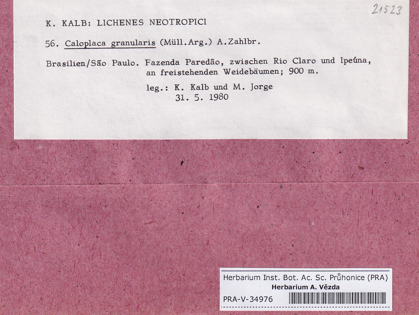 - Deposited in parcel Kalb, Lich. Neotrop.