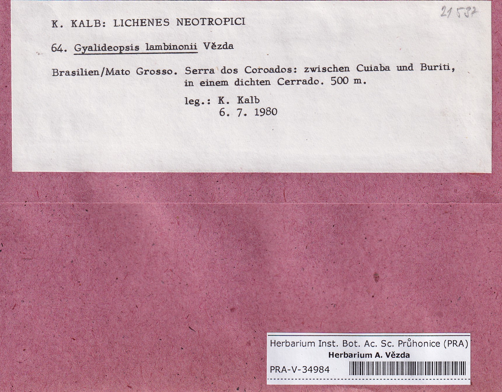 - Deposited in parcel Kalb, Lich. Neotrop.