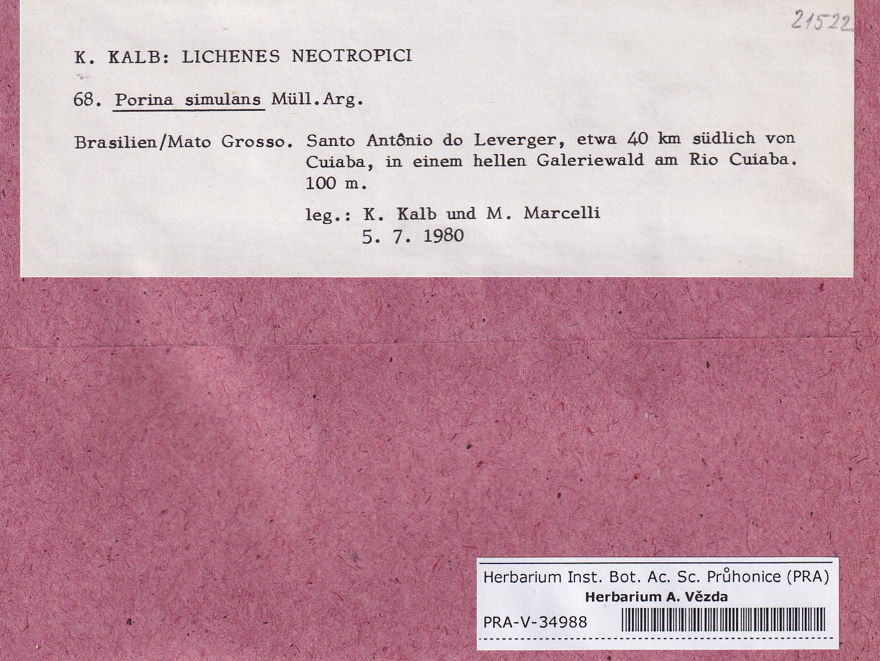 - Deposited in parcel Kalb, Lich. Neotrop.