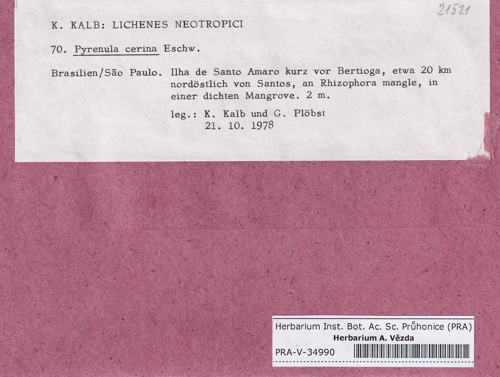 - Deposited in parcel Kalb, Lich. Neotrop.
