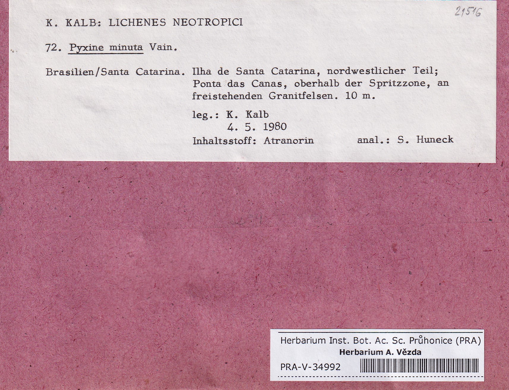 - Deposited in parcel Kalb, Lich. Neotrop.
