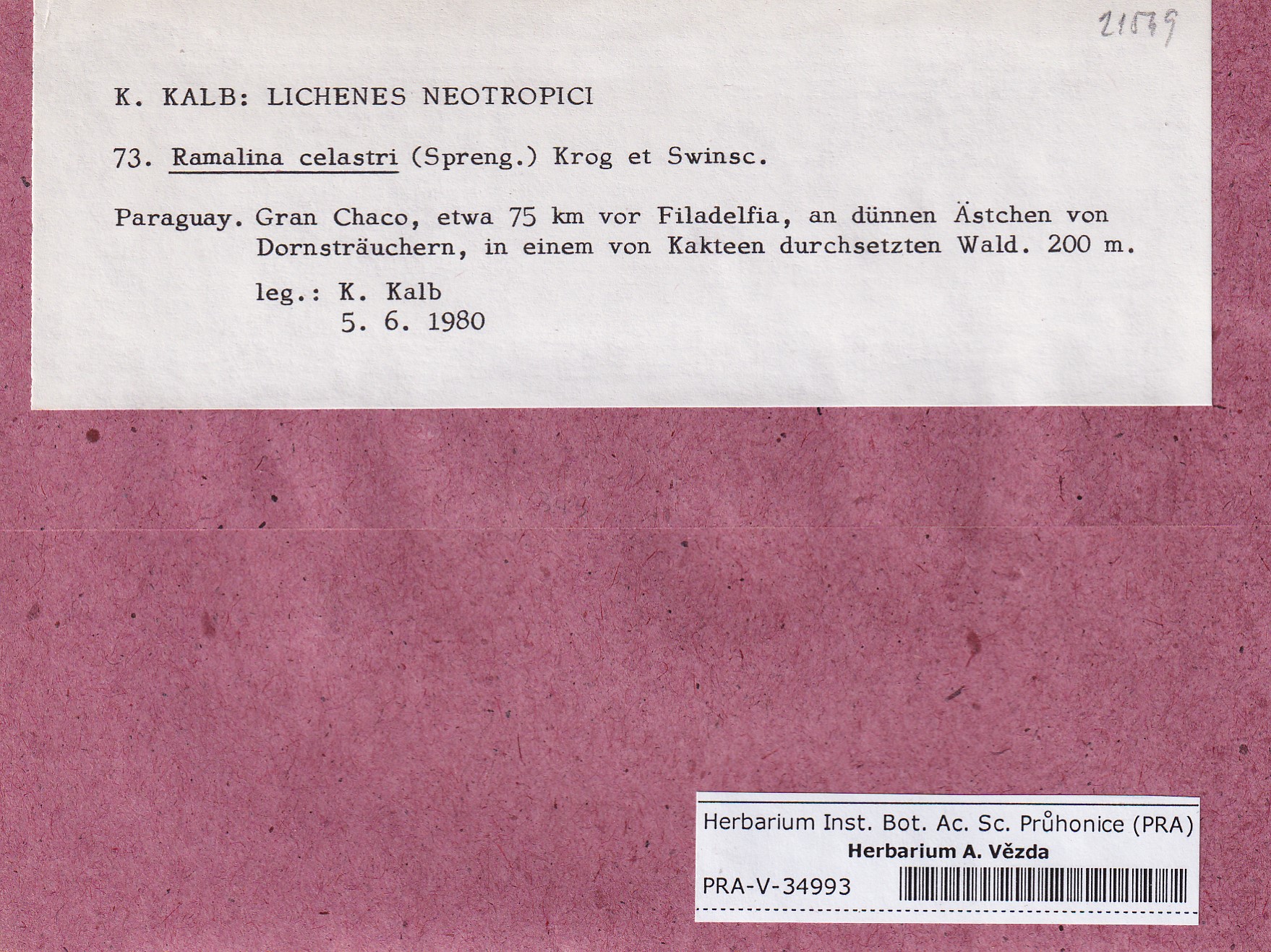 - Deposited in parcel Kalb, Lich. Neotrop.