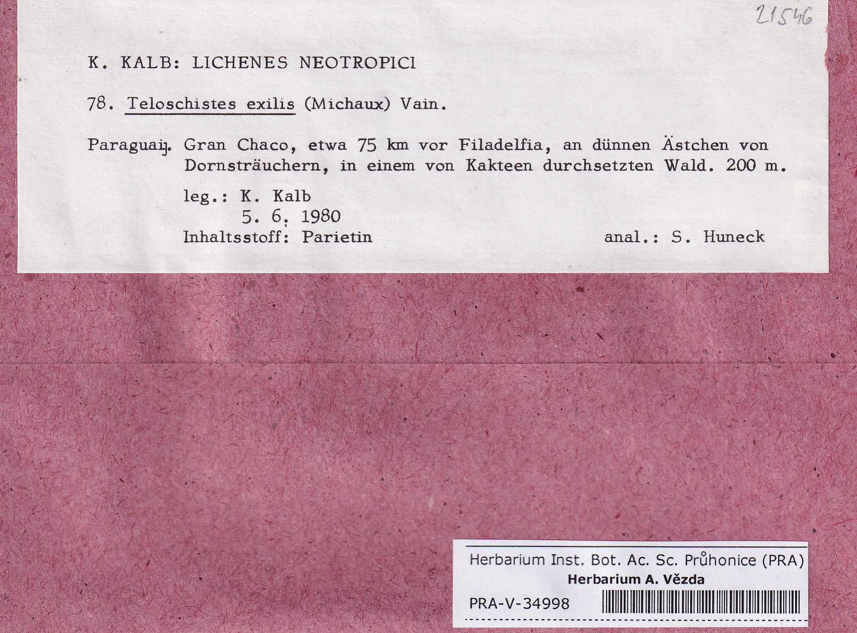 - Deposited in parcel Kalb, Lich. Neotrop.