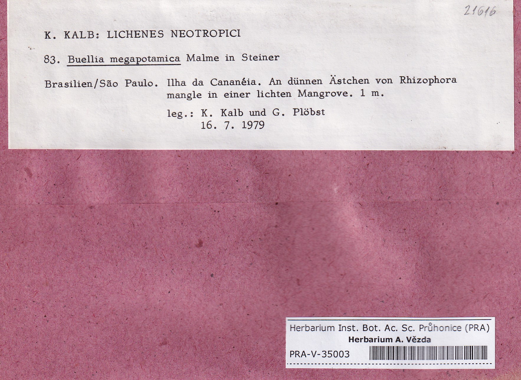 - Deposited in parcel Kalb, Lich. Neotrop.
