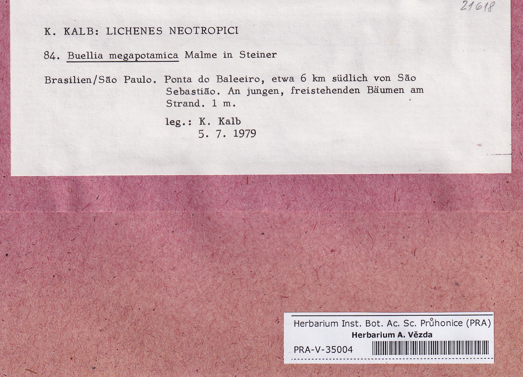 - Deposited in parcel Kalb, Lich. Neotrop.