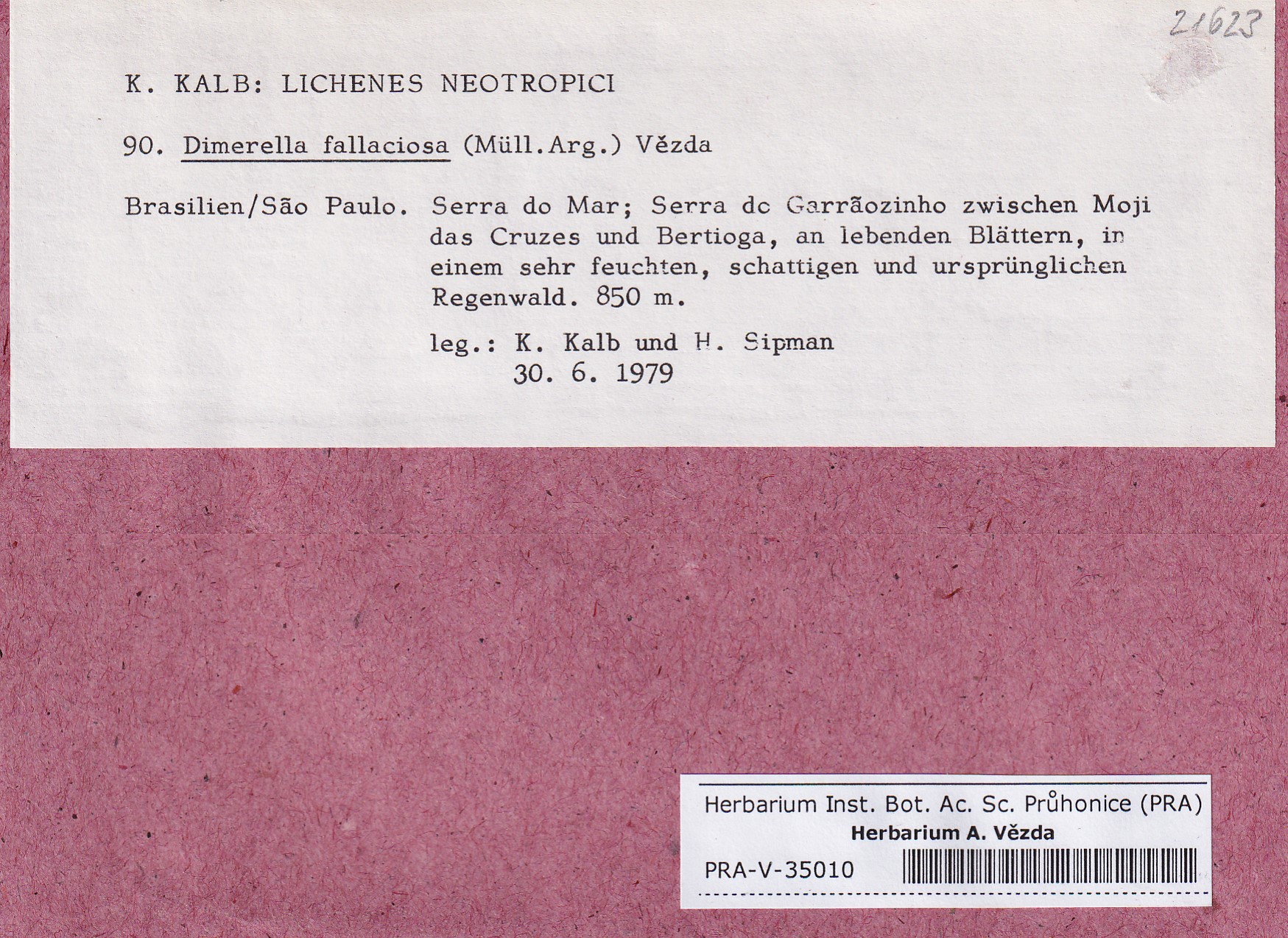 - Deposited in parcel Kalb, Lich. Neotrop.