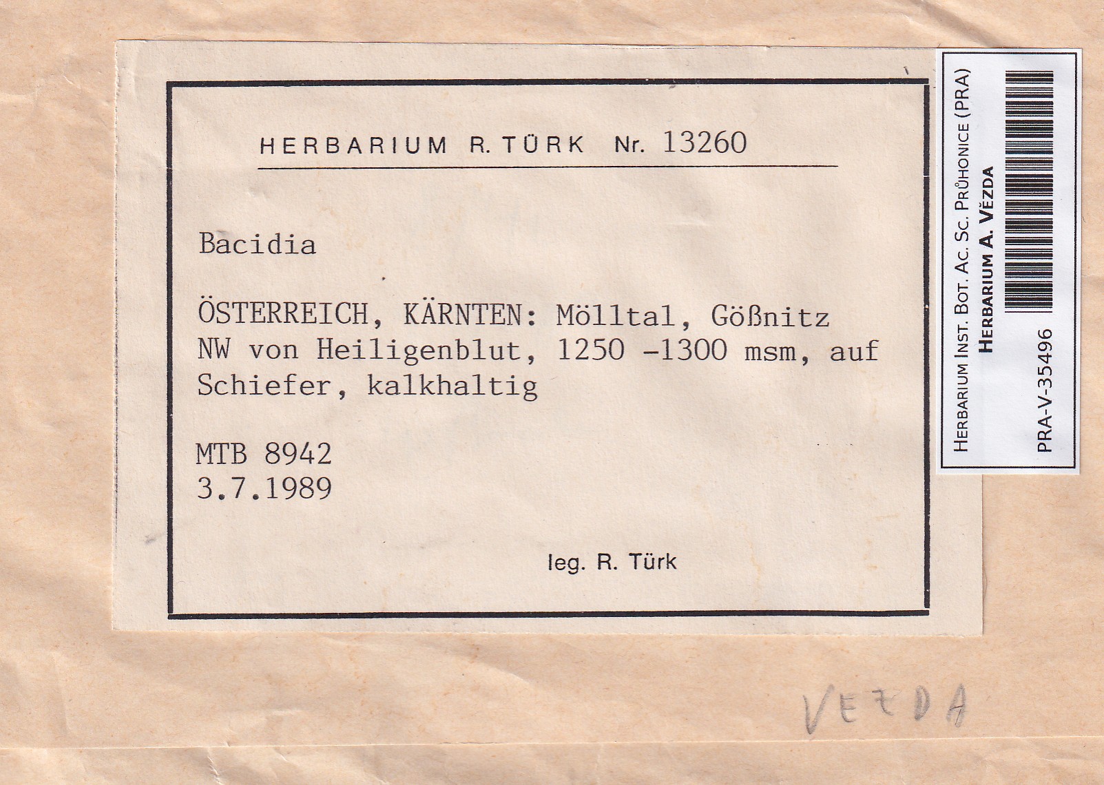 - Deposited in parcel no. 84 Bacidia A-C