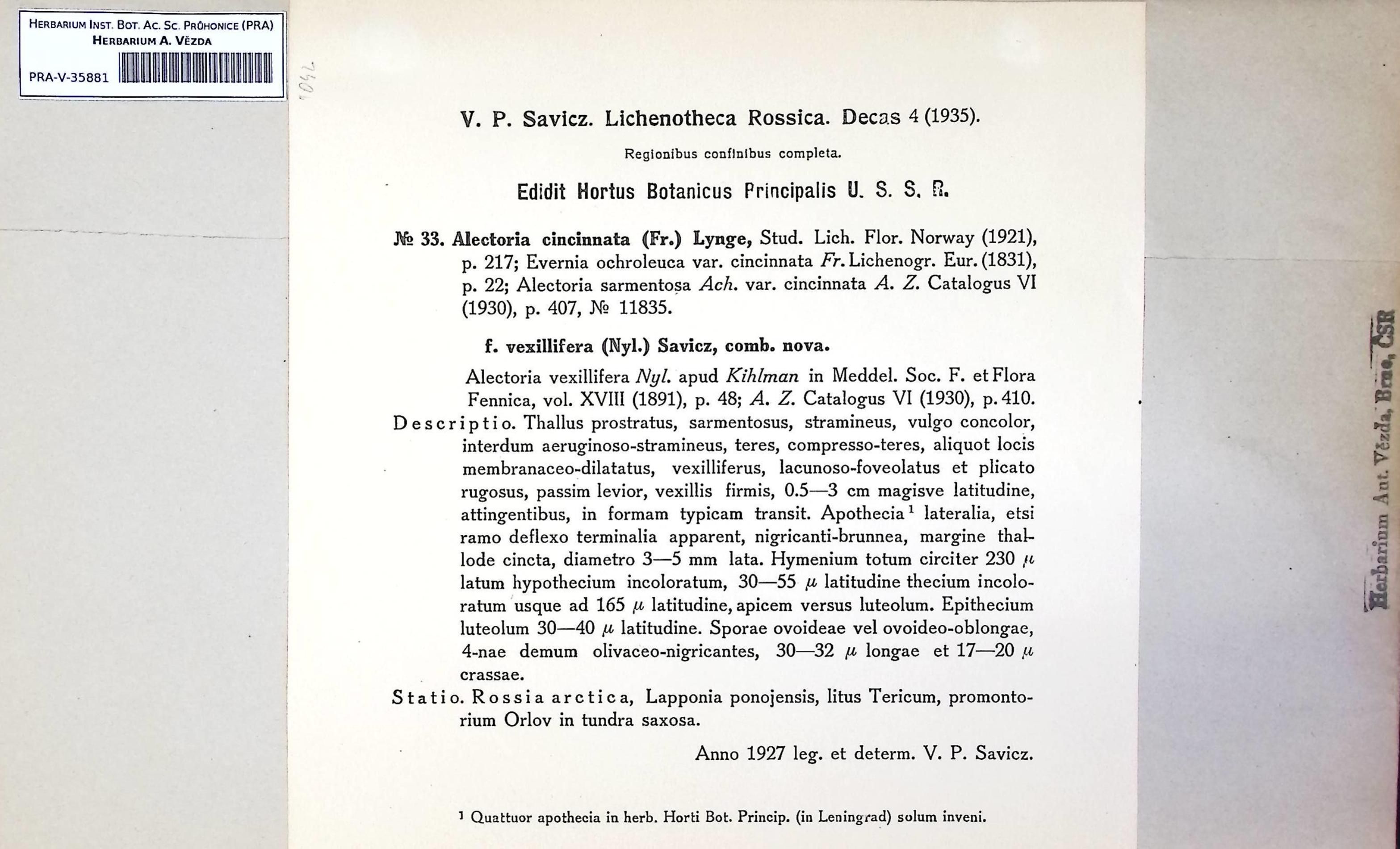 - Deposited in parcel Savicz, Lichenoth. Ross.