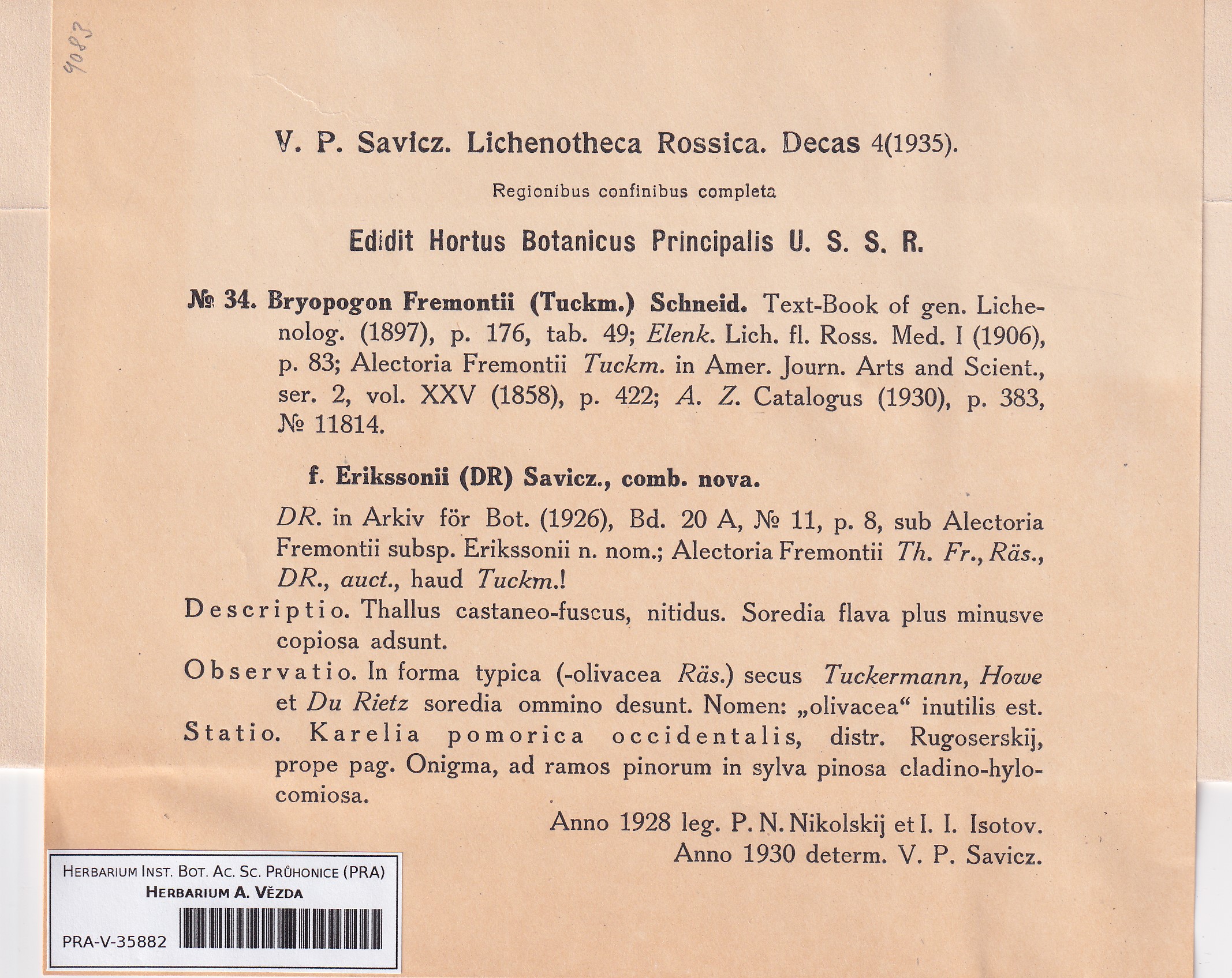 - Deposited in parcel Savicz, Lichenoth. Ross.