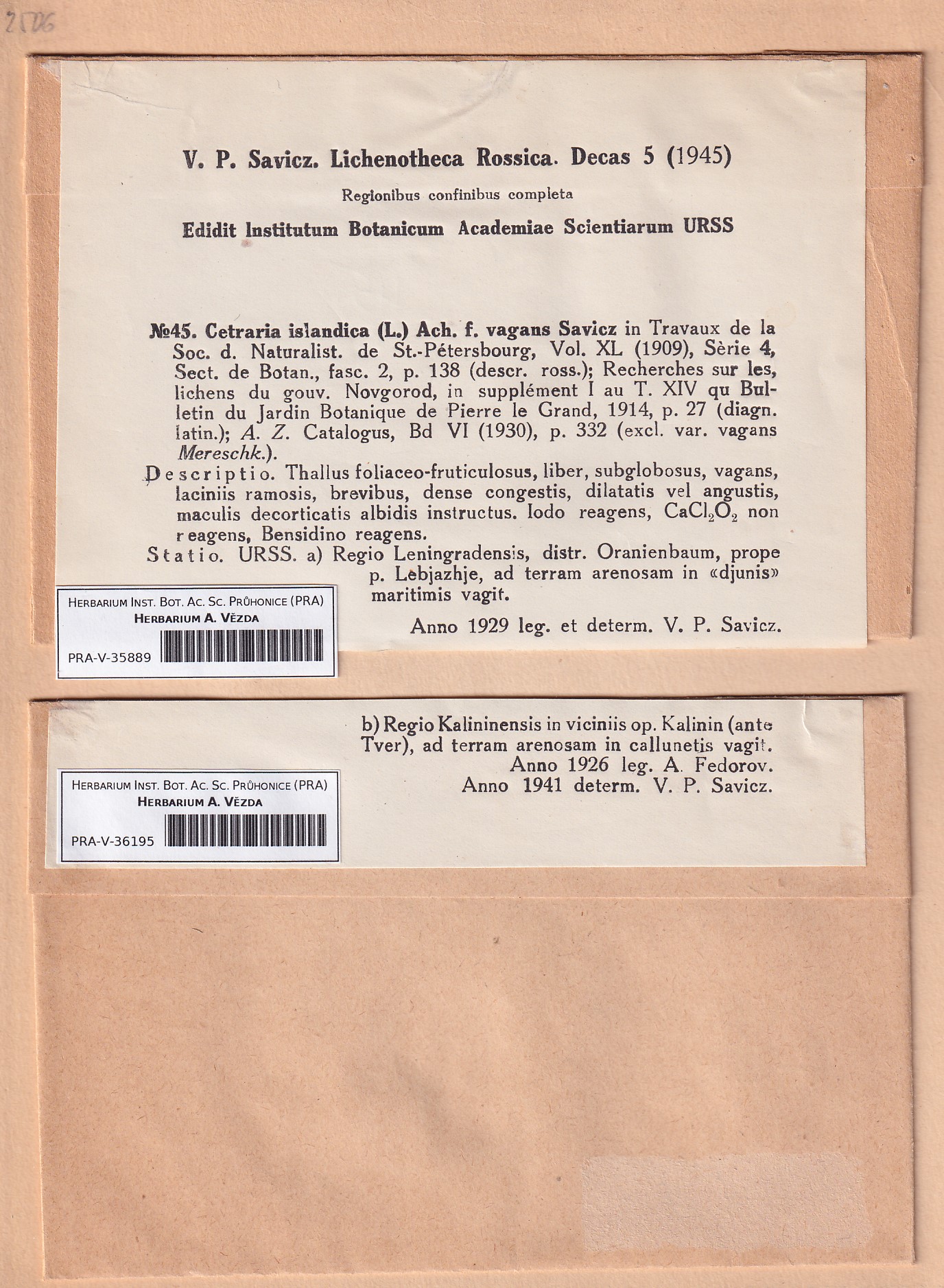 - Deposited in parcel Savicz, Lichenoth. Ross.