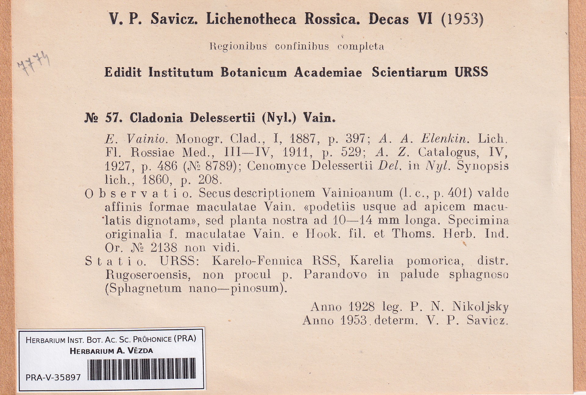 - Deposited in parcel Savicz, Lichenoth. Ross.