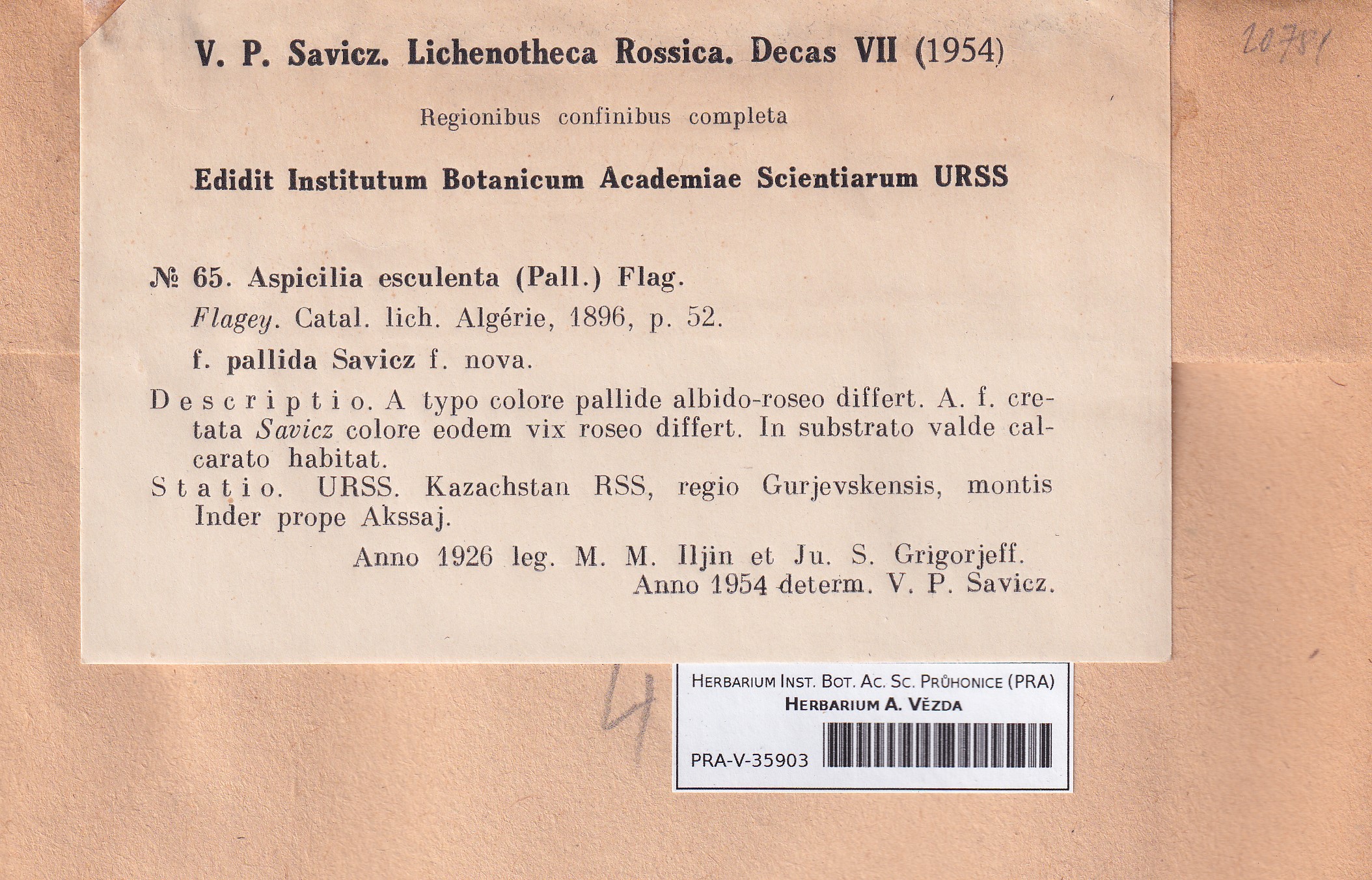 - Deposited in parcel Savicz, Lichenoth. Ross.