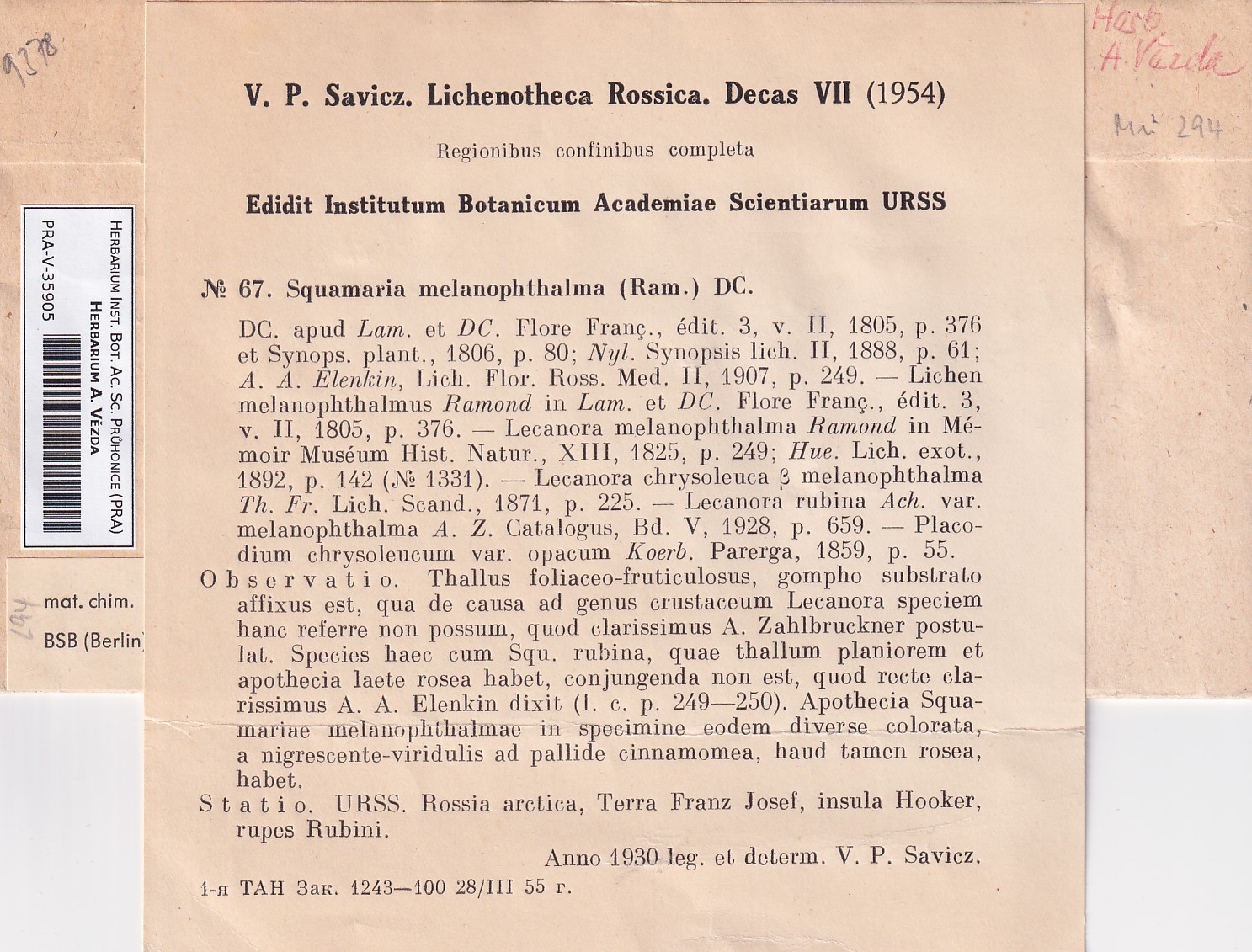 - Deposited in parcel Savicz, Lichenoth. Ross.