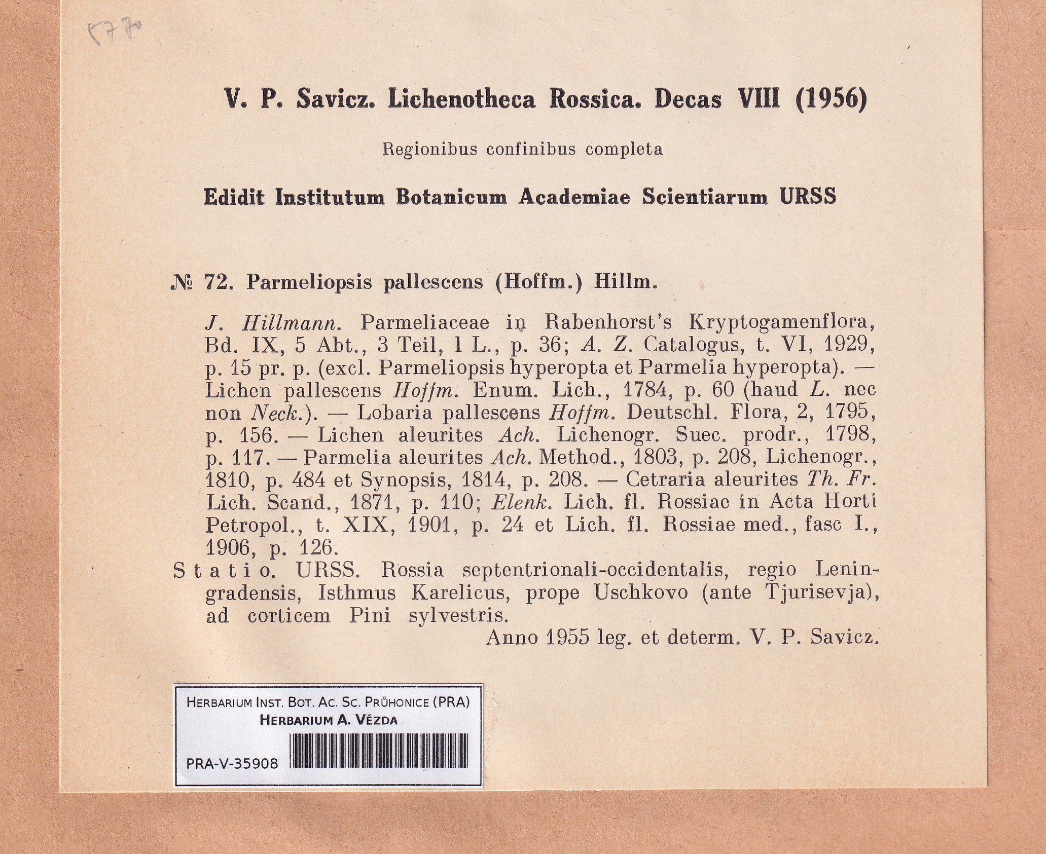 - Deposited in parcel Savicz, Lichenoth. Ross.
