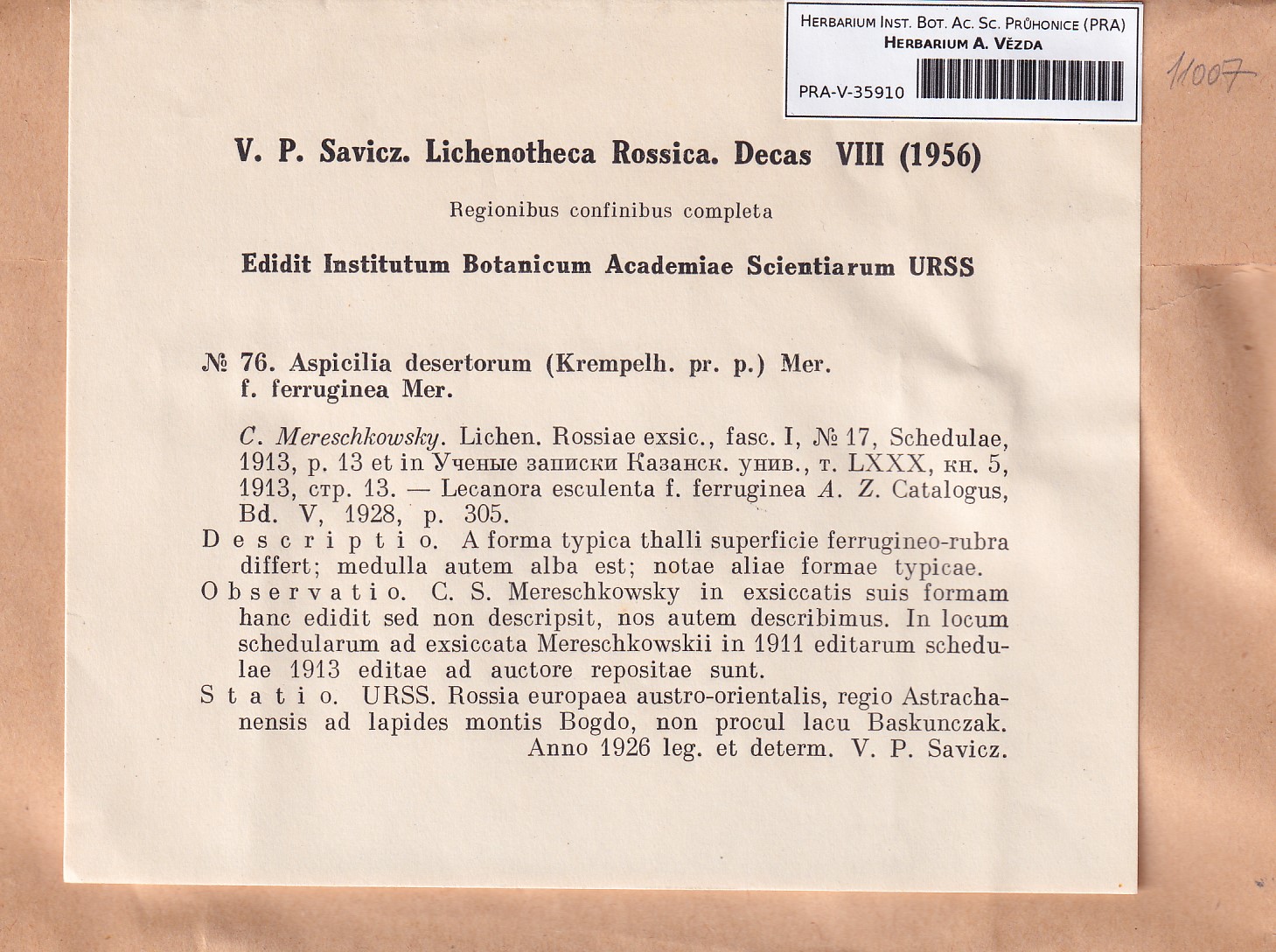 - Deposited in parcel Savicz, Lichenoth. Ross.
