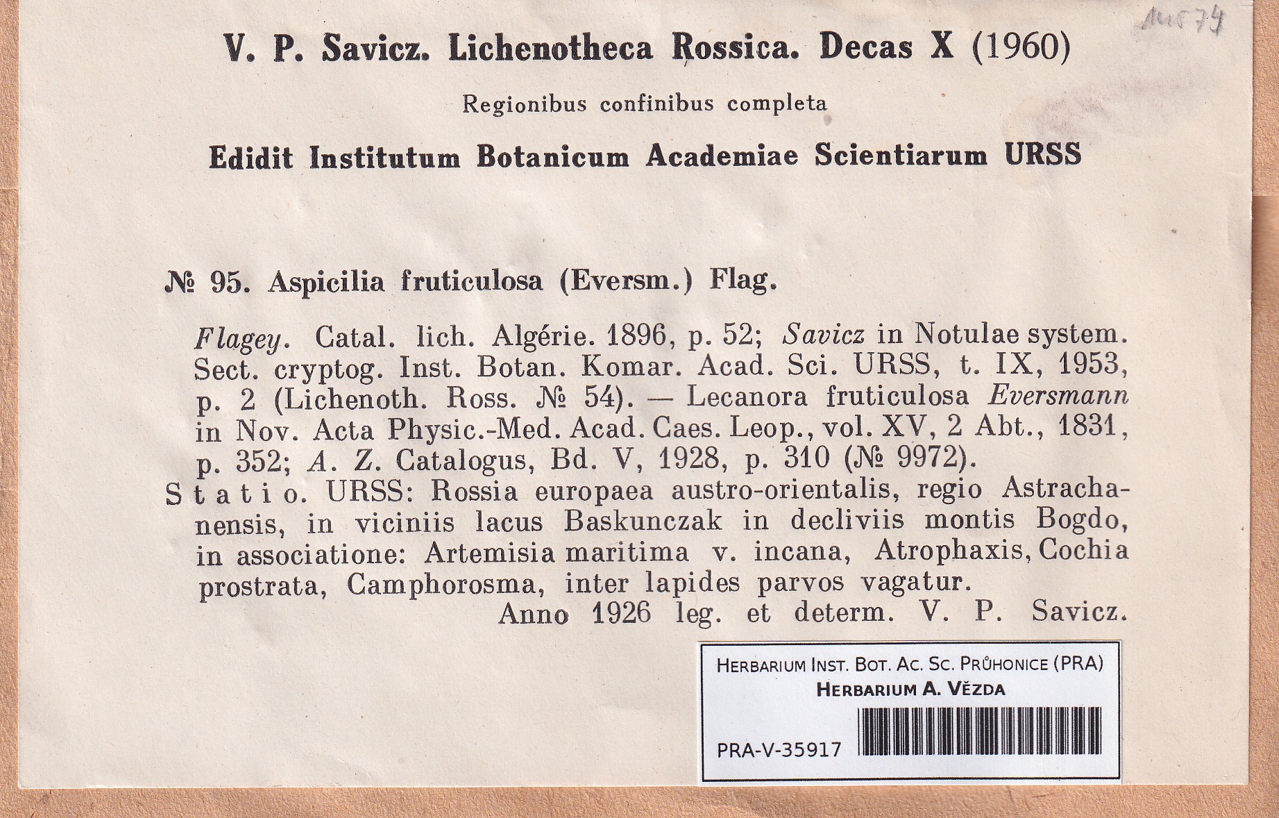 - Deposited in parcel Savicz, Lichenoth. Ross.