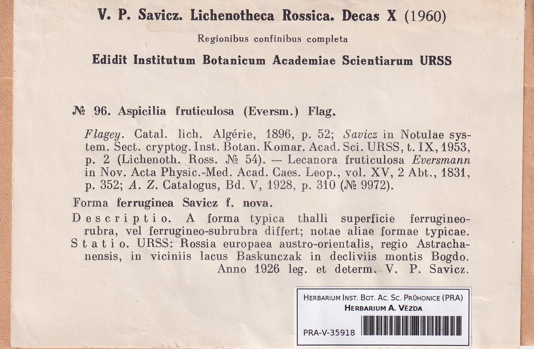 - Deposited in parcel Savicz, Lichenoth. Ross.