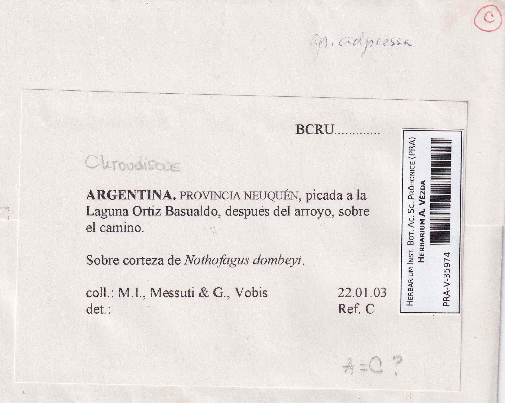 - Notes - specimen (NOT printed on the scheda)