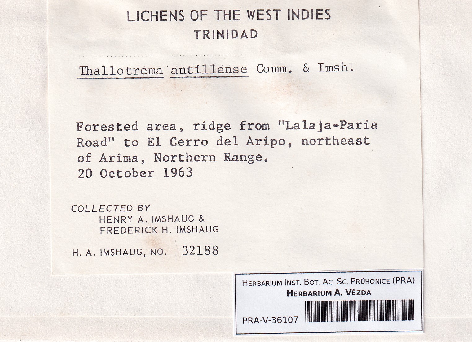 - Name Thallotrema antillense absent from Index fungorum
