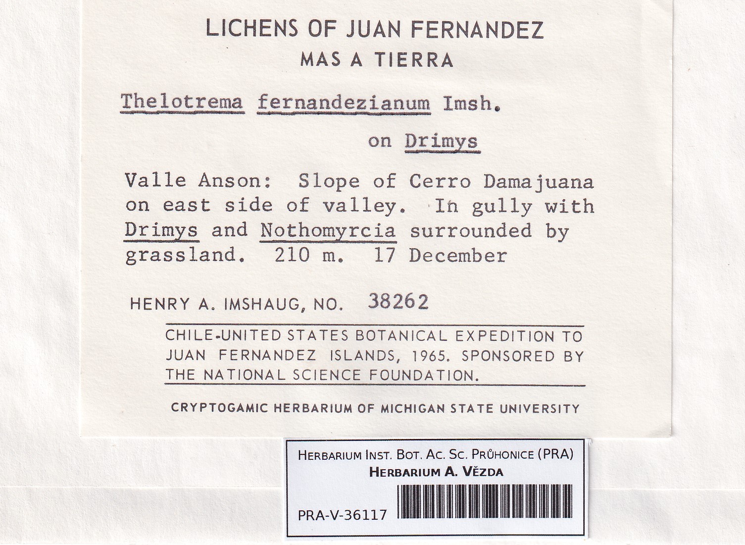 - Name Thelotrema fernandezianum absent from Index fungorum