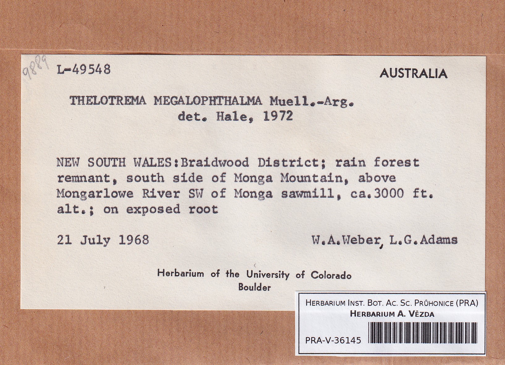 - Name Thelotrema megalophthalma absent from Index fungorum
