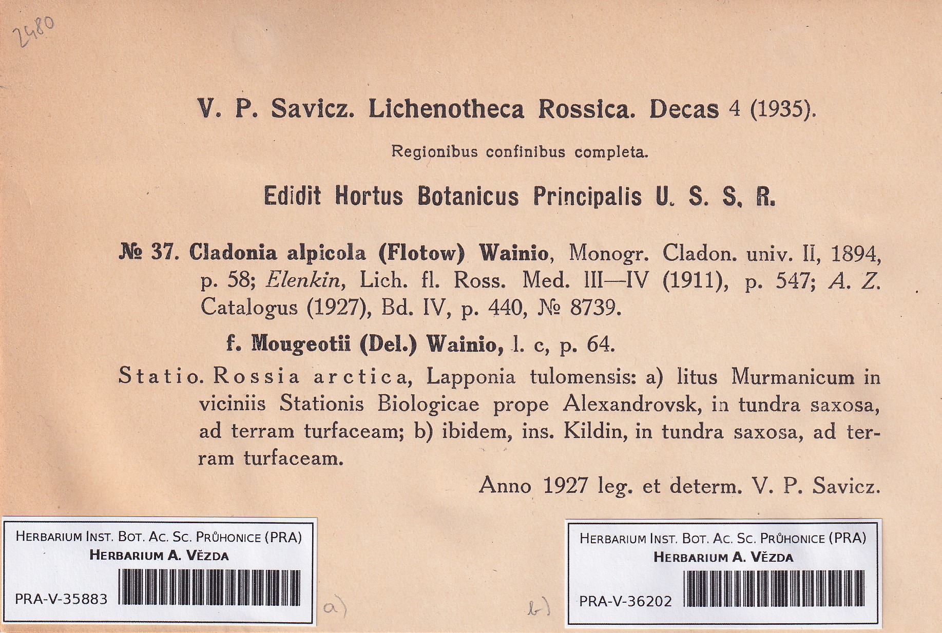 - Deposited in parcel Savicz, Lichenoth. Ross.