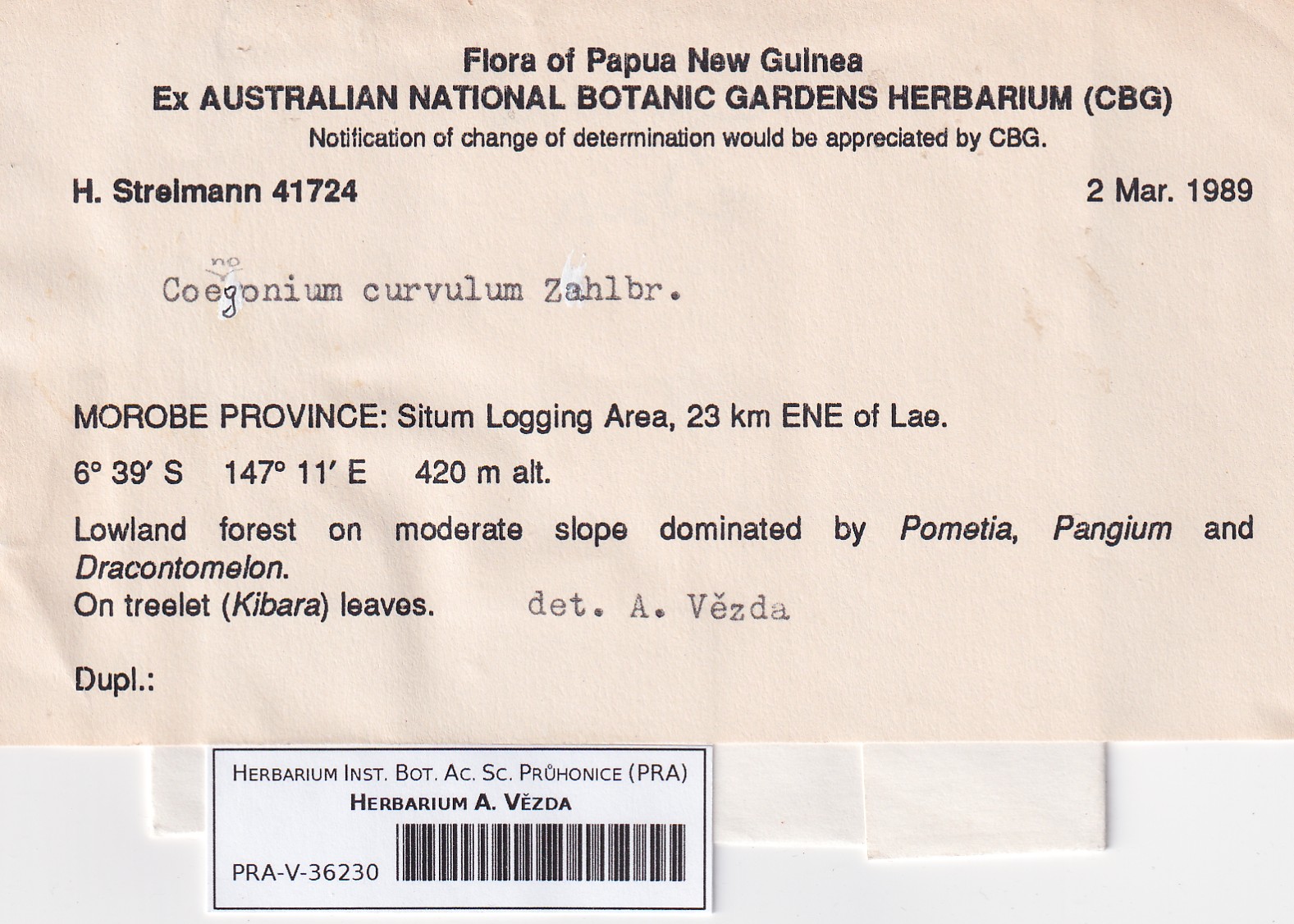 - Deposited Lichenes foliicoli Dimerella,Coenogonium