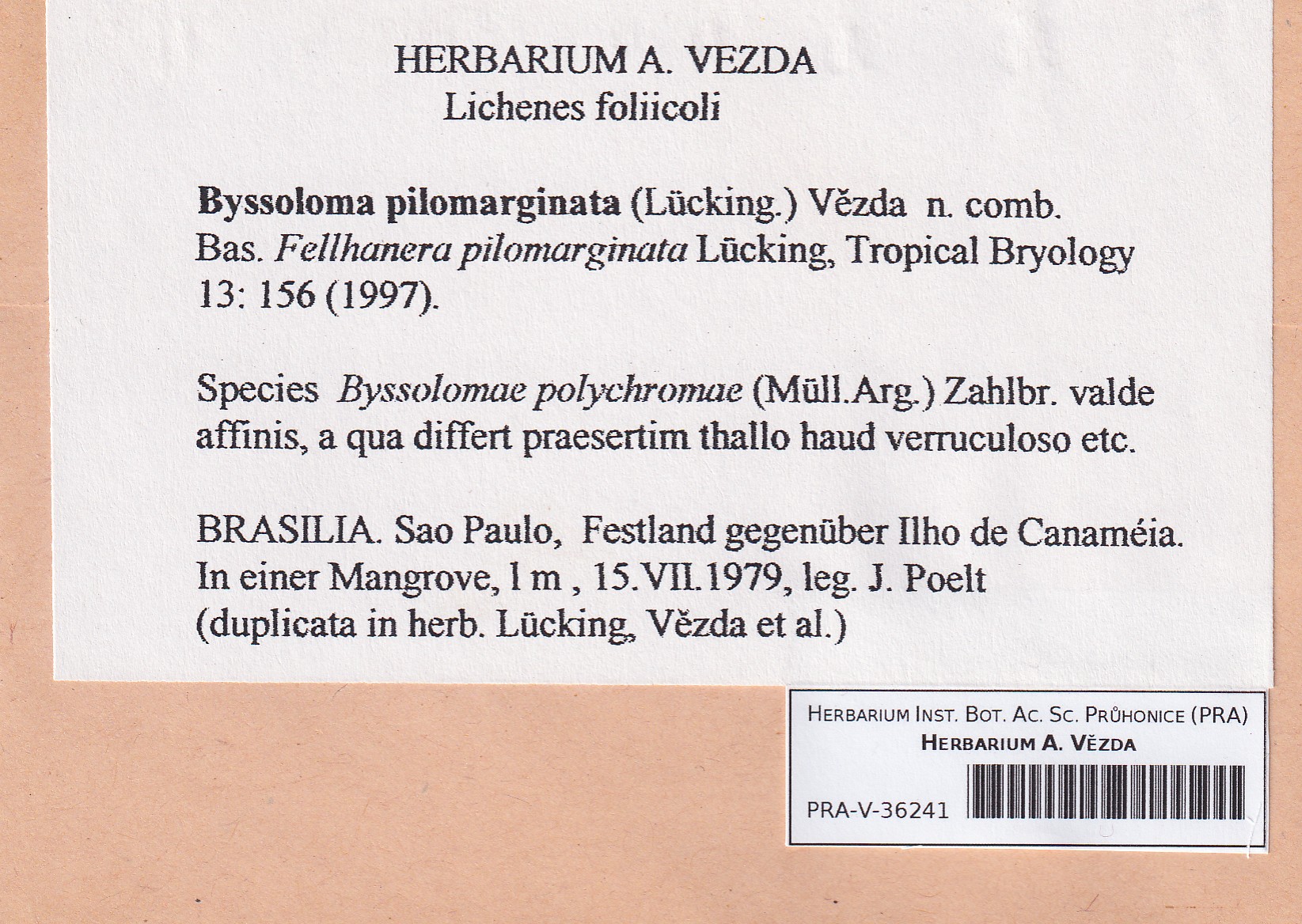 - Deposited Lichenes foliicoli Byssoloma