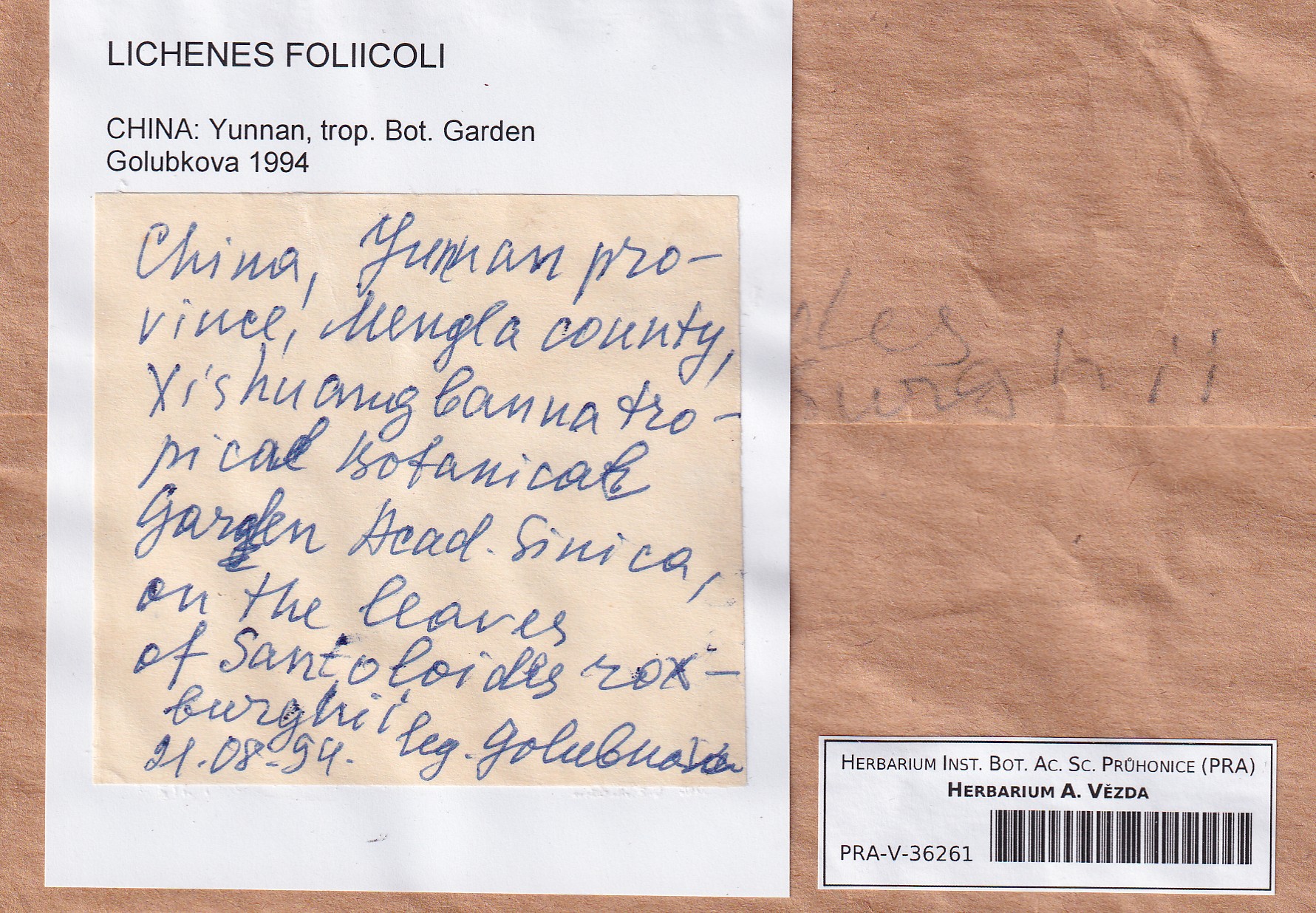 - Deposited: Lichenes foliicoli